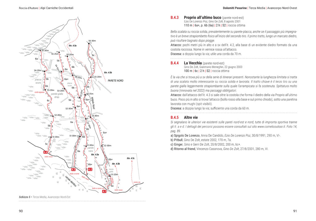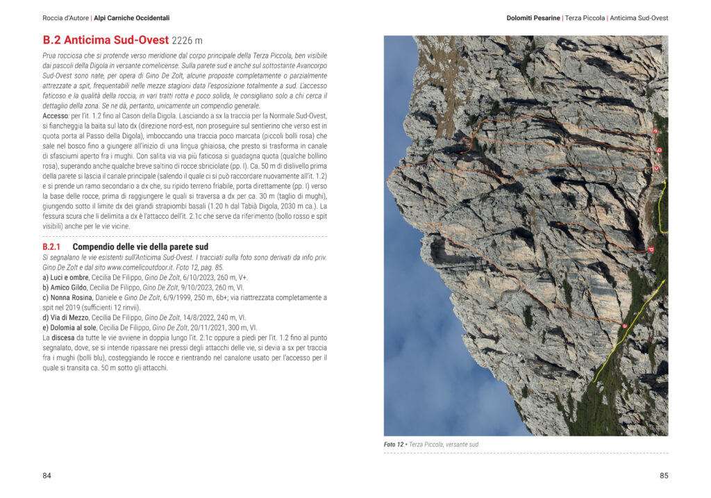 La descrizione puntuale e approfondita di 345 vie di roccia sulle Alpi Carniche Occidentali.