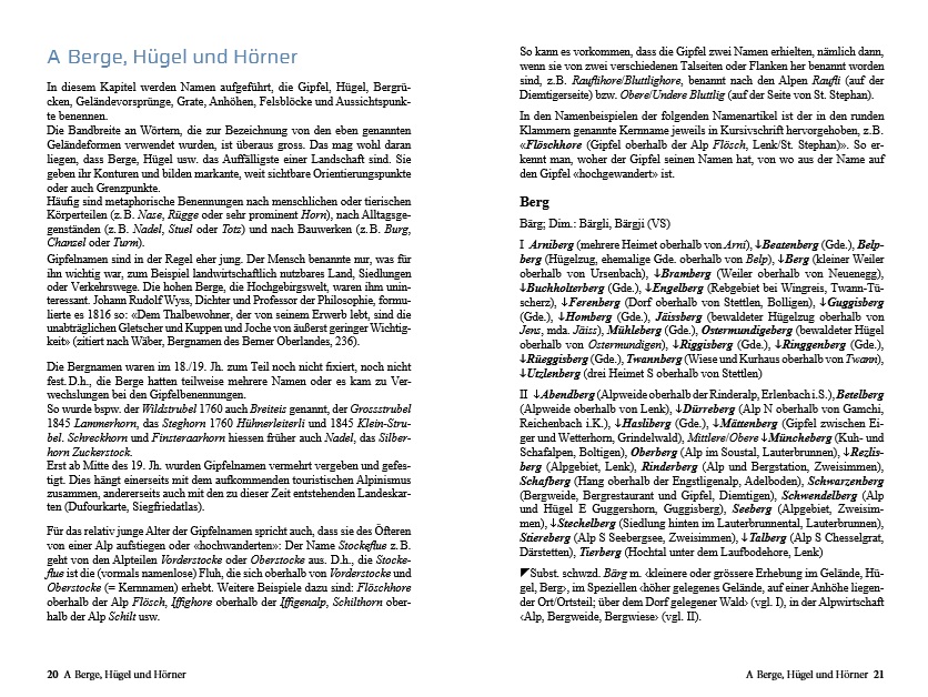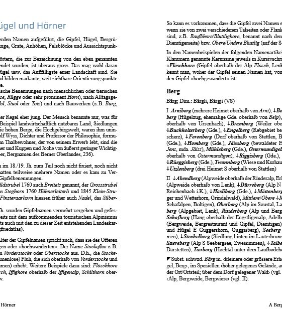 Alpiglegalm, Beibräche, Hargarte, Mönchsbüffel, Pletsche, Speckhubel oder Tschipparällehore – hinter diesen klangvollen Namen verbirgt sich eine faszinierende Welt der Schweizer Landschaft und Sprache.