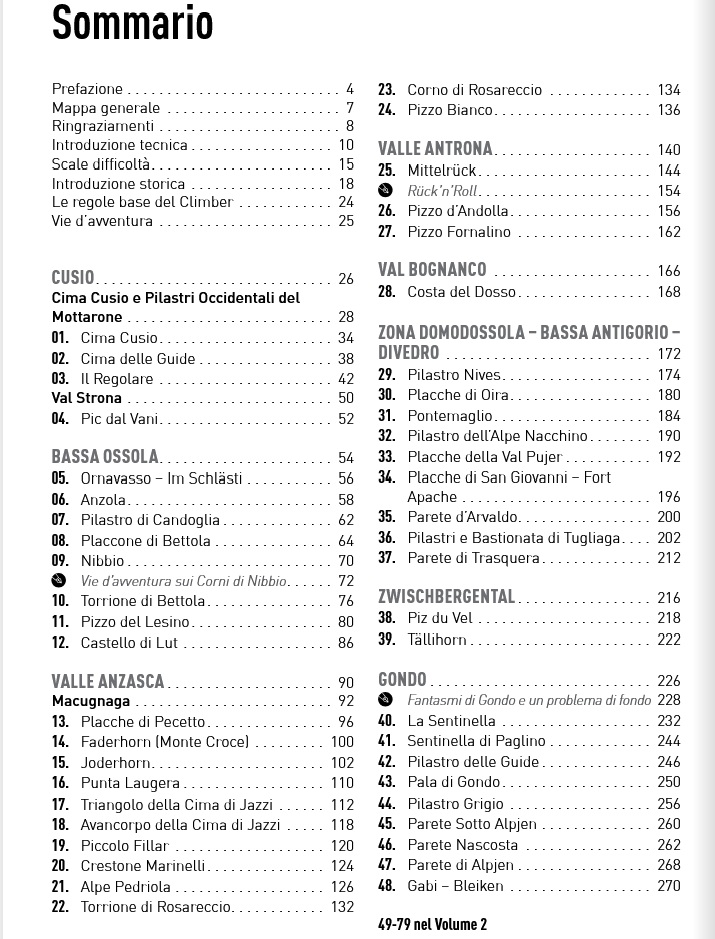 Der vorliegende Band behandelt die Routen in den Gebieten Mottarone, Val Strona, Unteres Ossola, Macugnaga, Val Antrona und Val Bognanco, unteres Valle Antigorio, Val Divedro und Simplon.