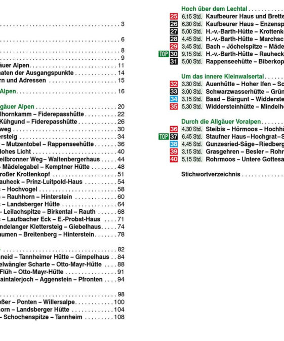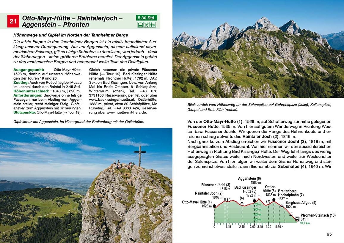 Doch auch, wer nicht so viel Zeit hat, kann sich auf den Weg machen: Die jeweiligen Tourenlängen können individuell zusammengestellt werden bzw. sogar Tagestouren sind möglich, da bei allen Etappen eine Abstiegsmöglichkeit angegeben wird.Alle Etappen in diesem Rother Wanderführer sind zuverlässig beschrieben und werden von Wander-karten mit Routenverlauf und aussagekräftigen Höhenprofile ergänzt. GPS-Tracks stehen zum Download von der Internetseite des Rother Bergverlags bereit. Anforderungen und Infos zu Übernachtungsmöglichkeiten werden detailliert vorgestellt. Nicht zuletzt die Bilder steigern die Vorfreude auf die Allgäuer Alpenwelt.