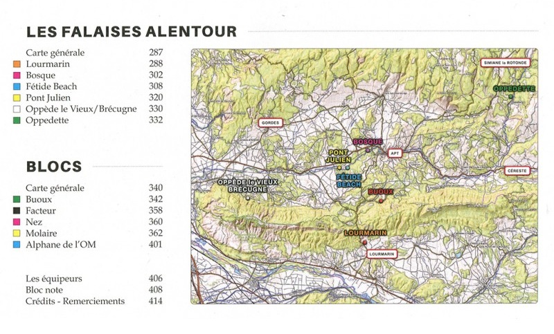 This Buoux guidebook also covers a large number of boulder problems at Buoux, as well as 7 other crags in the surrounding area. These other crags are Bosque, Oppedette, Lourmarin, Pont Julien, Fétide Beach, Oppède le Vieux, and Brécugne.