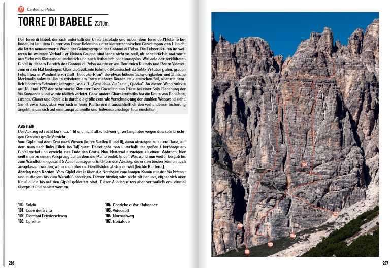 Klettern in den „Cantoni“ heißt: viel Sonne, relativkurze Zustiege, keine Probleme wegen schwieriger Abstiege oder schnellen Wetterwechseln, freie Kletterei in gutem Fels mit fast immer natürlicher Absicherung und nicht zuletzt: ein unbekümmertes Leben zwischen den Aufstiegen. Aber hier findet man auch hohe Gipfel mit über 3000 Metern Meereshöhe, sehr schwierige Routen, brüchige Felsbänder, unangenehme Abstiege wie am Torre Trieste oder schwierige Wände wie die Westwand der Cima Busazza mit mehr als tausend Metern Höhe, die fast den ganzen Tag im Schatten liegt und wo es keine luchtmöglichkeit gibt.