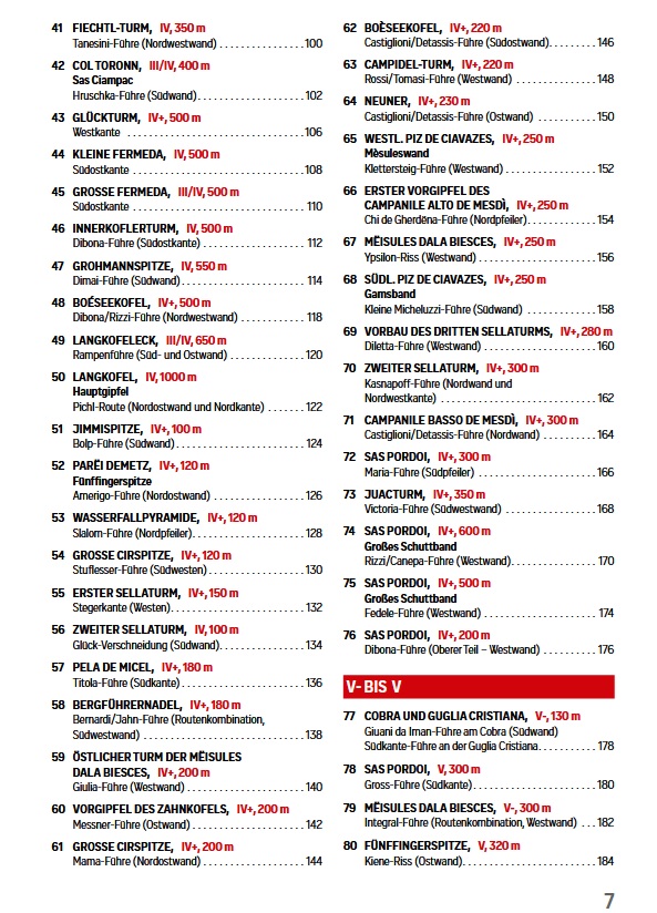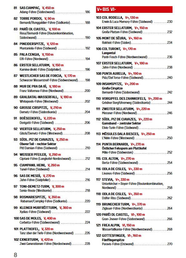 In diesem Kletterführer werden die 150 schönsten Kletterrouten in den Dolomiten, speziell in Gröden und Umgebung vorgestellt. Die einzelnen Routen sind nach Schwierigkeitsgraden unterteilt und beinhalten übersichtliche technische Daten wie Höhenunterschied, Strecke, Seillängen, Gehzeiten u.a. sowie detaillierte Beschreibungen und Skizzen.