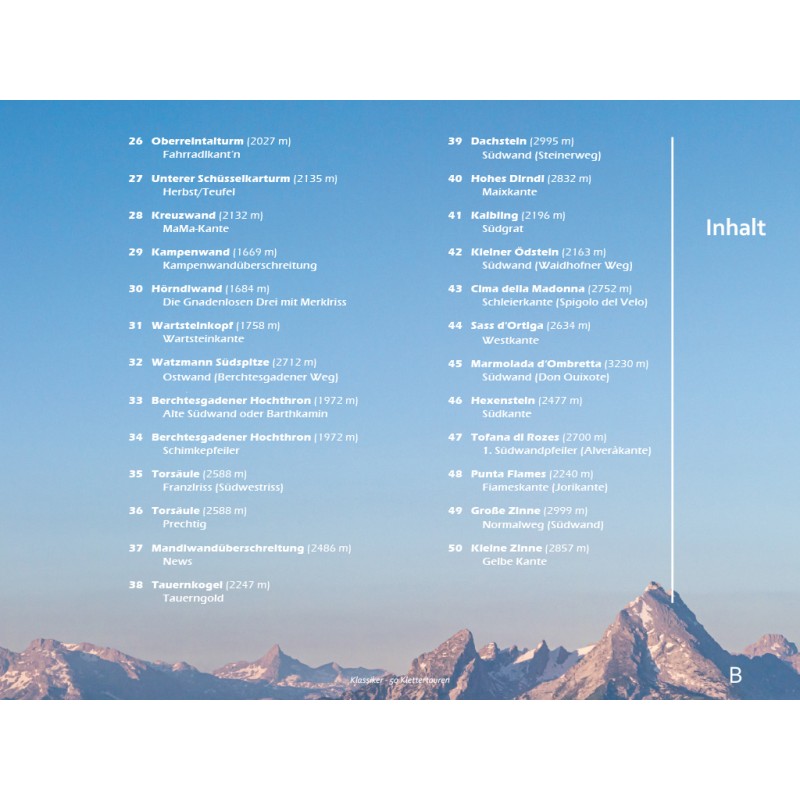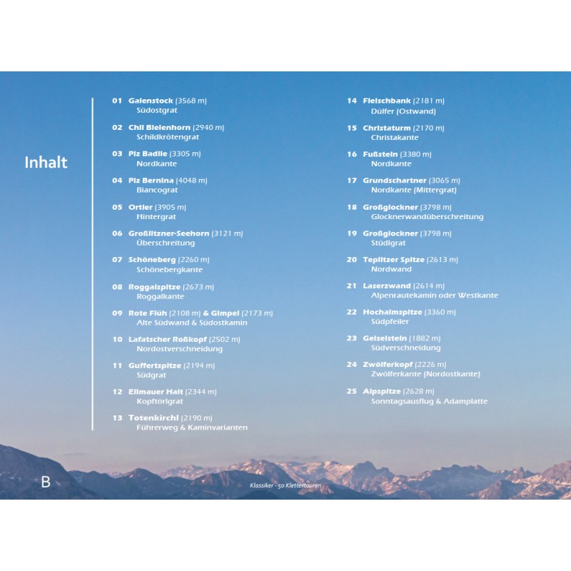 Was ist ein Klassiker? Watzmann, Großglockner, Ortler, Große Zinne, Marmolada – klassische Klettertouren führen auf Gipfel mit klingenden Namen. Auch die Hotspots des Kletterns fehlen im Buch natürlich nicht: Oberreintal, Wilder Kaiser, Dolomiten, Hochkönig. Legendäre Klettertouren, Wunsch- und Traumziele vieler Bergsteiger. Großartige Wände, markante Verschneidungen, schöne Überschreitungen. Vor allem aber: Grate – die klassischste Art des alpinen Kletterns.