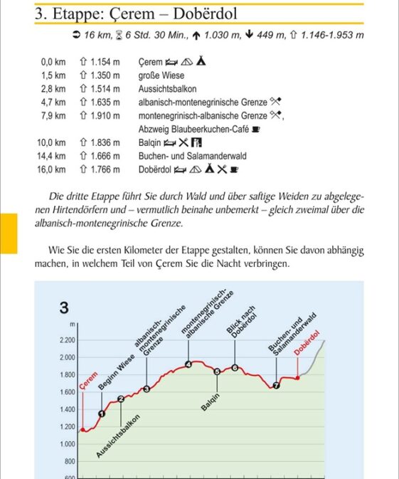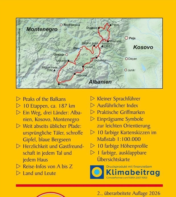 2011 wurde mit dem Peaks of the Balkans ein abenteuerlicher neuer Fernwanderweg im Dreiländereck zwischen Albanien, Kosovo und Montenegro eröffnet. Dieser Wanderführer liefert eine genaue Beschreibung des knapp 187 km langen Weges durch die faszinierende Landschaft rund um die «Gipfel des Balkans».
