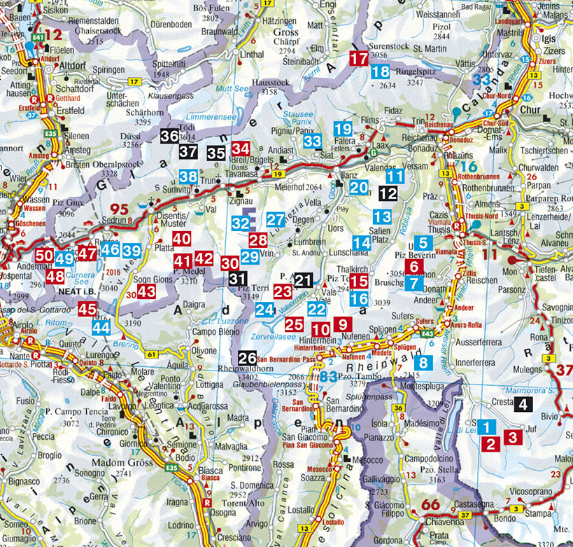 Laax – Flims – Disentis – Vals – Safiental – San Bernardino – Avers / Juf. 50